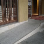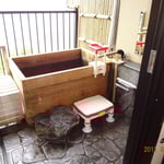 趣のある木製車椅子が目を引く。館内は乗り換えてもOK。客室は、完全バリアフリーではなく、全室和室だが、お風呂は狭くとも必要な場所に手すりがついていた。