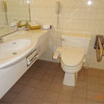 バリアフリールームあり。トイレは狭いが、手すりを後付けした努力が見られる。浴槽は腰掛スペースあり。日本料理の竹生島がおすすめ。