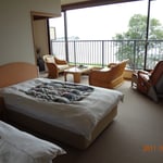 車は、地下駐車場または、玄関前にもスペースあり。優先的に停めさせてもらえて便利。客室からは、浜大津港まで見渡せる琵琶湖がサイコー!広いので、車いすでの移動が楽です。大浴場もあり。