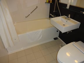 入口段差8cm。浴槽高さ50cmで両淵20cm程度。便座高さ43cm。
