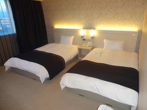619ツインルーム。ベッド間隔55cm。(最大136cm)ベッド高さ41cm。