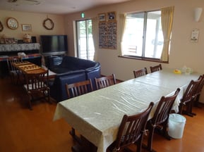 1階ダイニングルーム。食事は車椅子のままで可能。食事形態も軟飯、きざみ食対応可能。