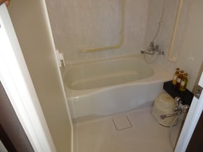 401号室浴室。入口70cm。浴槽高さ45cm。両端の淵幅30cm。