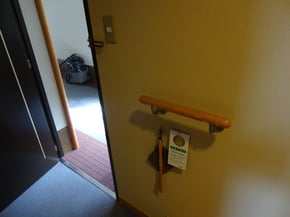306号室。玄関に12cmの段差あるが手すり付き。