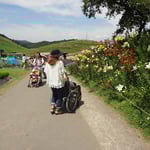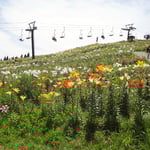 ゴンドラに乗って、山頂まで。車椅子でも乗車OK。上にはリフトがあるが、降りるのは歩きなので、坂道歩行可能な方であればOK。園内に車椅子用トイレがないため、安曇川道の駅などで済ませてから行ったほうがよい。