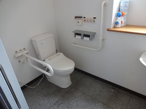 車椅子トイレが館内にあり。便座高さ43cm。